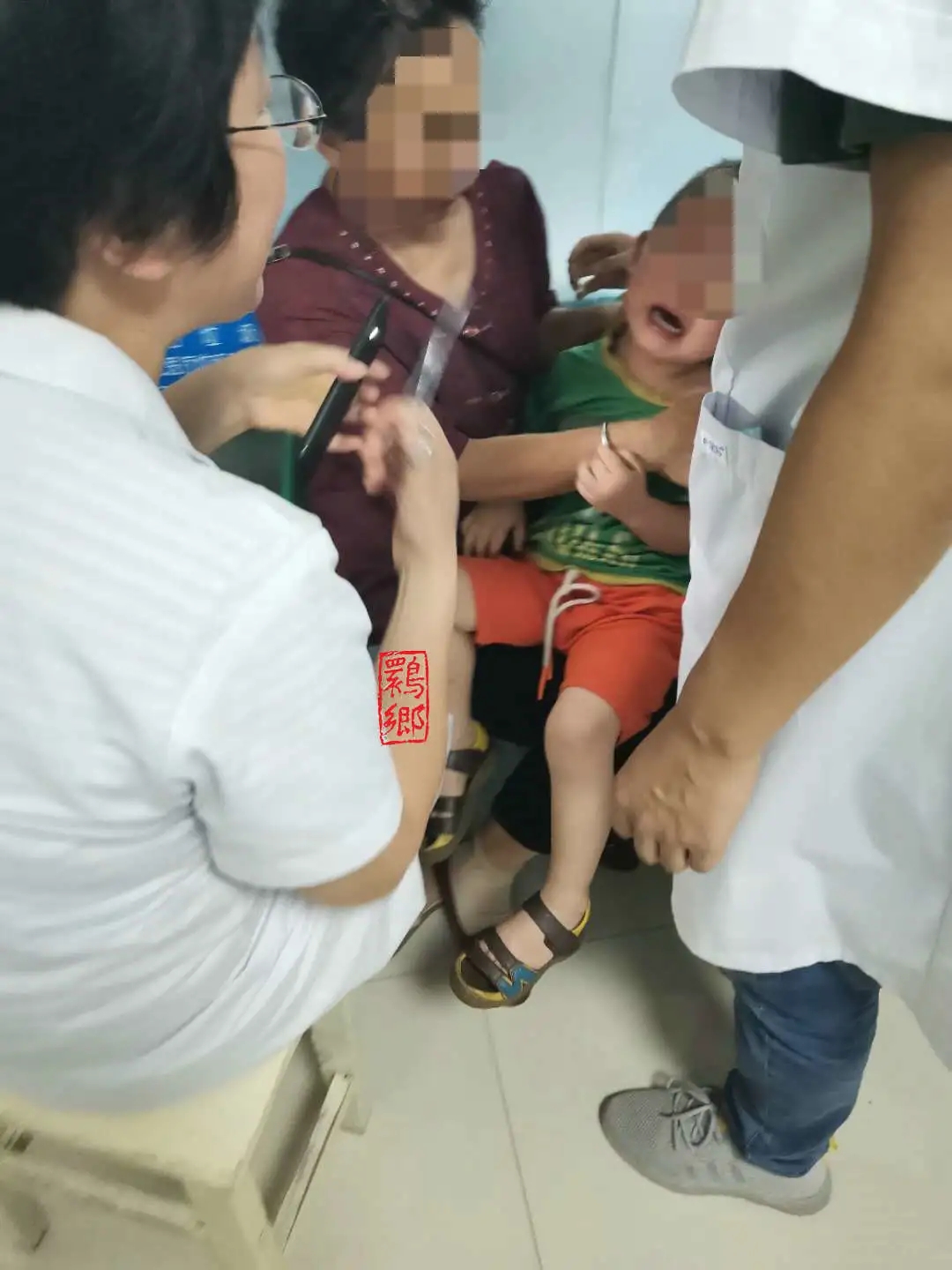 8月3日下午6:30左右,一位奶奶抱着孙子急忙来到我们3楼住院部。焦急万分地说:“医生赶紧给帮忙看一下我孙娃吧,今天跑了两个诊所都没取出来,听说你们看得好,就赶紧抱过来了!”