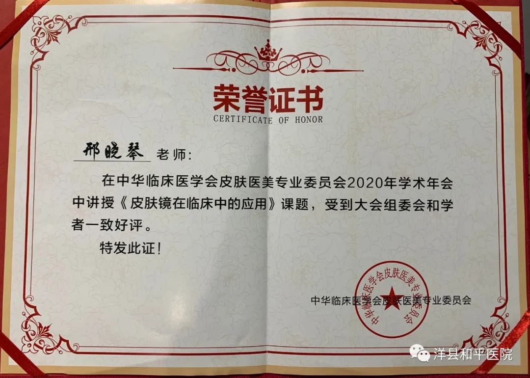 来自全国知名的皮肤科专家教授和基层具有实战工作经验的医务工作者60余人在大会进行了交流,我院医技科邢晓琴主任讲授了《皮肤镜在临床中的应用》,得到大会组委会和学者一致好评。