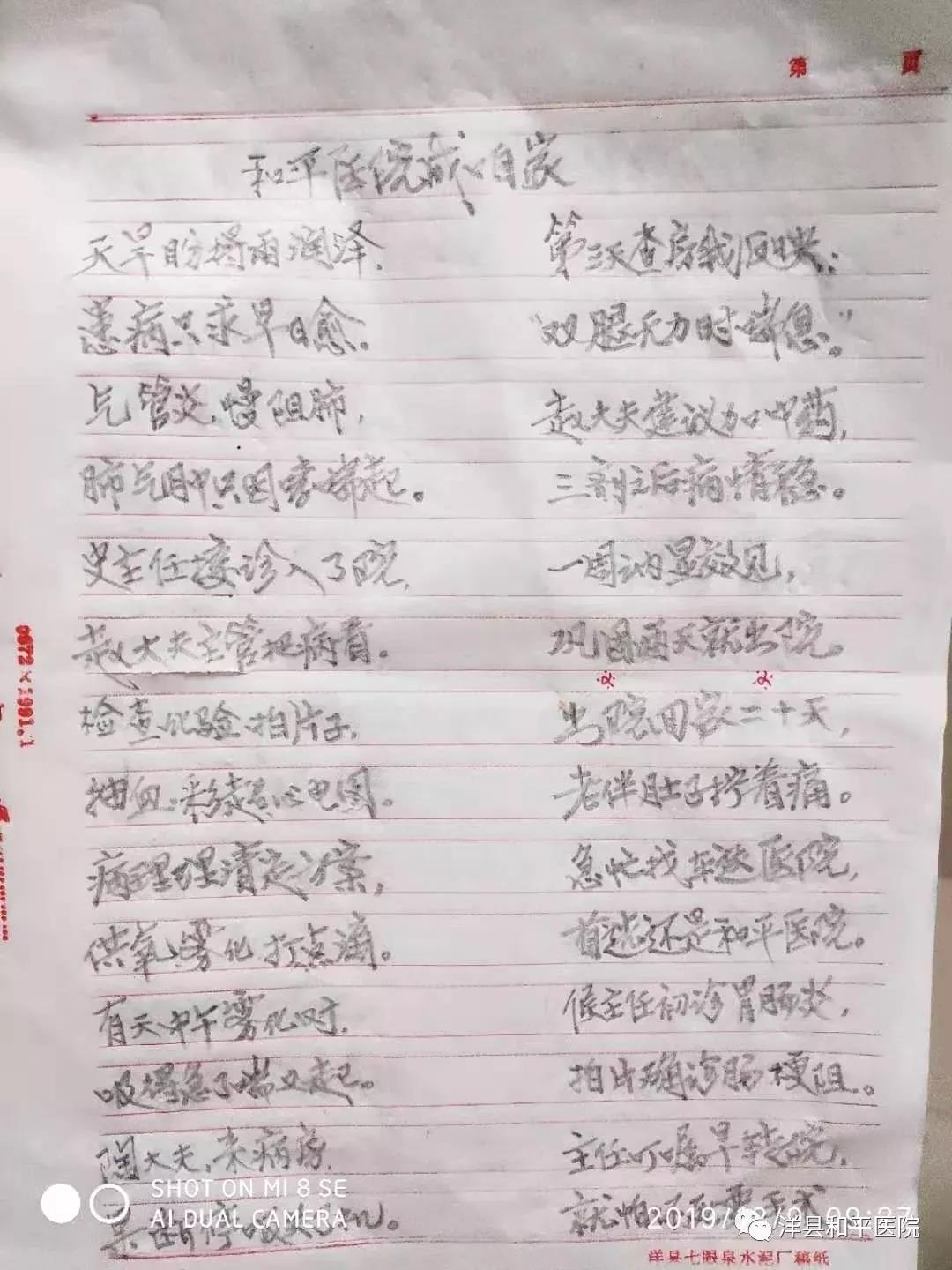七眼泉老两口出了医院竟然给人家写了个顺口溜送来了