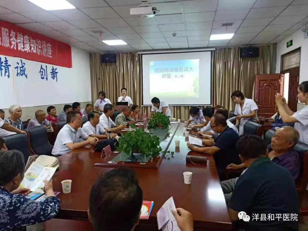 2019年8月28日,洋县和平医院成功举办了糖尿病健康教育大讲堂(第二期)。本次活动由洋县科协主办、洋县和平医院科协分会承办,参加人员有洋县科协罗清泉副主席、和平医院王万成副院长、医务科主任史正新以及内科医护人员和32名糖尿病患者。