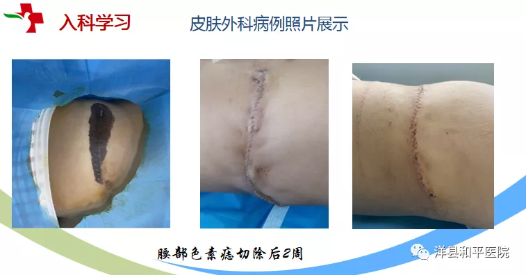 汇报中,侯主任全面细致地介绍了此次进修学习到的知识和技能,明确了皮肤外科的手术范畴,展示了精细缝合的美容效果。