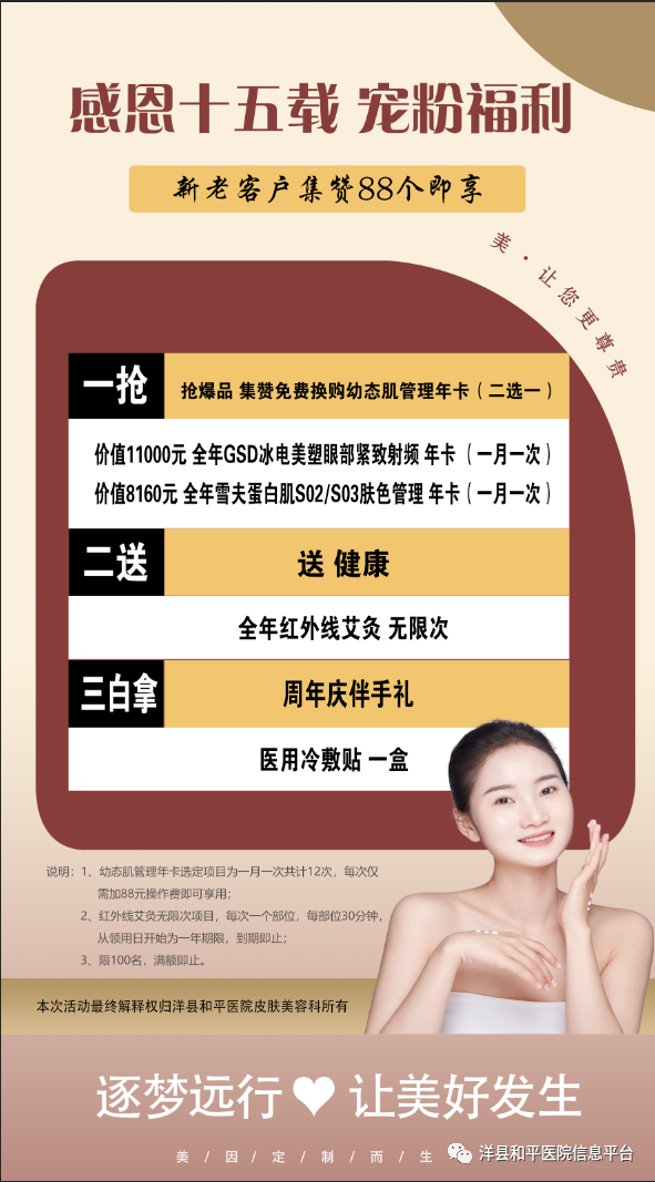 声明:本次活动最终解释权归洋县和平医院皮肤美容科所有