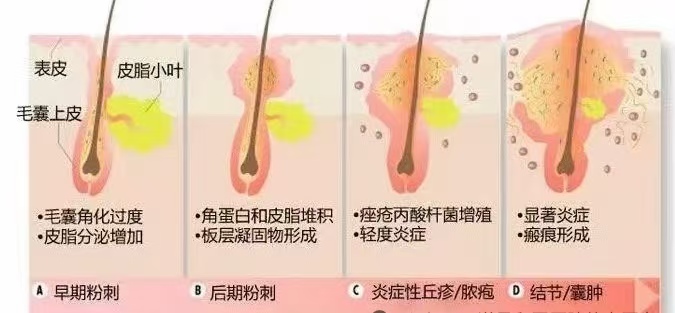 本质:毛囊皮脂腺单位异常角化+细菌感染+炎症反应,需医学干预。
