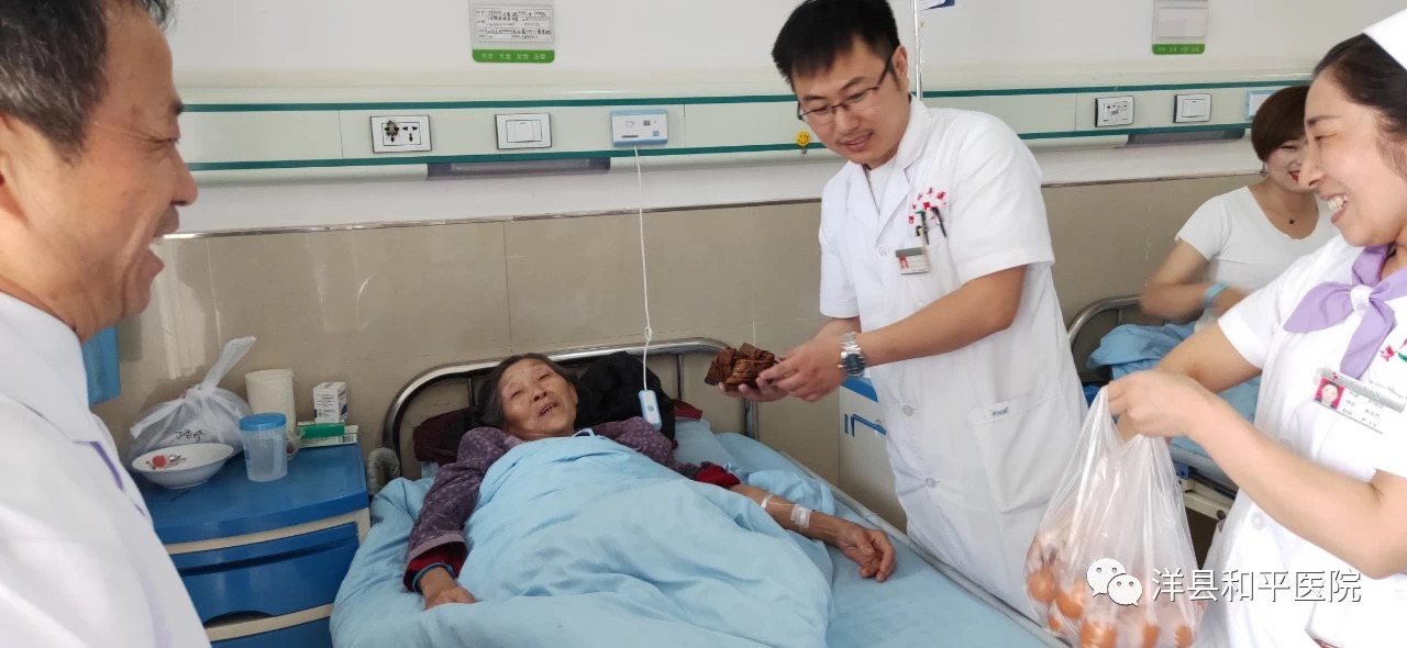 6月6日早上11点30分,副院长王万成、住院部侯红星主任、护士长崔亚芳带领住院部全体医护人员,逐一为住院患者及家属送上“端午节”礼物,带去了和平人一份节日的祝福。