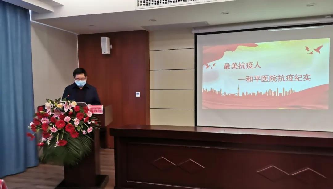 首先,张颖龙院长做了抗疫工作纪实报告。他指出,全院职工齐心协力,勇于担当,为阻击疫情做出了应有的贡献。医院组织对隔离职工的家属进行慰问、为小宝宝送去奶粉等系列暖心工程;同时熬制防疫中药、院内每日消杀;在岗职工兢兢业业、尽心尽力,还不忘用微信聊天、视频、电话等形式对隔离中同事予以关怀。医院在防疫物资紧缺,压力重重的情况下,情系教育、情系下一代、情系战斗一线的民警,为学校、派出所等单位送抗疫物资;慰问洋县宾馆、蓝湾酒店医务人员等等。张院长平凡、朴实的话语中再现了一幅幅感动的画面,不时响起阵阵掌声,许多同志感动的潸然泪下,让我们真切感受到抗疫工作的艰辛和同事们的无畏,也更加坚定了和平人奋进向上、积极作为的仁爱情怀。