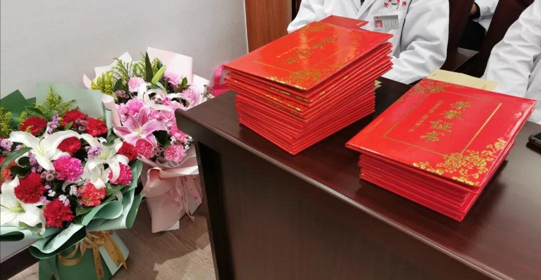 马超副局长、张颖龙院长、史正新副院长、工会主席刘宝文,分别为杨海量和赵亚芬2名新冠肺炎防控工作突出贡献者、4名新冠肺炎防控工作优秀组织者、19名新冠肺炎防控工作先进个人、1名新冠肺炎防控工作优秀标兵进行颁奖。