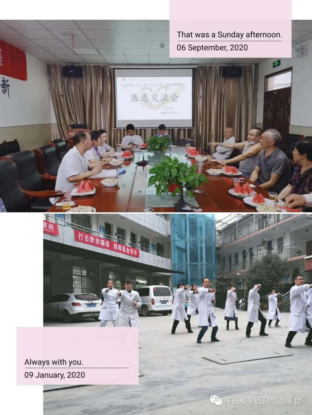 让我们以追梦者的情怀为医院呐喊,和平人抱以勇立潮头的气魄和胆识,投身于瞬息变化的医疗卫生行业之中,我们坚信,只要我们凝心聚力、共同努力,洋县和平医院的明天定会加辉煌灿烂。