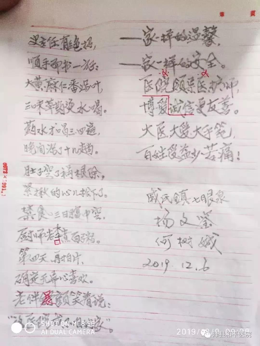 七眼泉老两口出了医院竟然给人家写了个顺口溜送来了