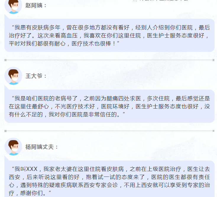 真诚感谢大家对我院的肯定和提出的宝贵意见。医院将结合所提出的意见和建议,及时整改、完善不足,加强医院管理,进一步提升医疗服务质量,把患者的心声落实到具体的工作中,真诚服务于患者,架起与患者沟通的桥梁,医患携手共建美好的明天!