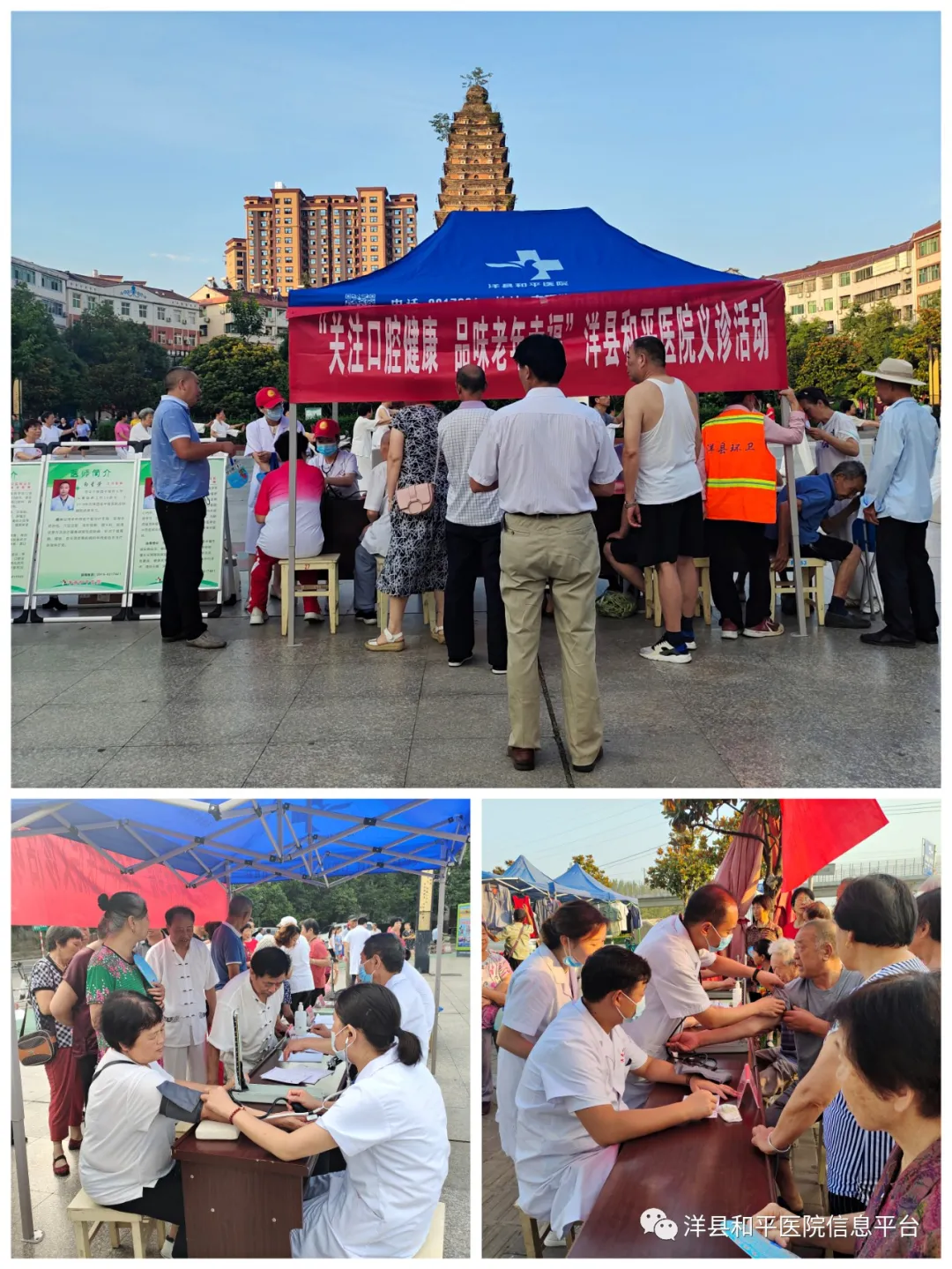 为响应县卫健局号召,宣传普及老年健康知识,切实提高老年人健康生活水平,7月13日、14日上午,洋县和平医院分别在蔡伦广场、开明广场举行了“关注口腔健康,品味老年幸福”义诊活动,为百姓提供免费口腔健康检查、义诊服务,并针对老人易发的口腔疾病普及防治知识等。