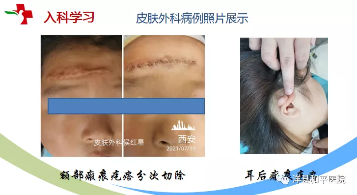 汇报中,侯主任全面细致地介绍了此次进修学习到的知识和技能,明确了皮肤外科的手术范畴,展示了精细缝合的美容效果。