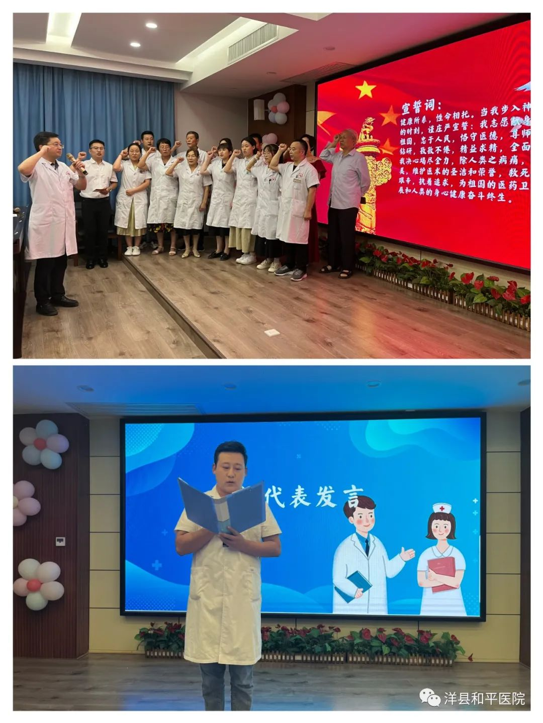 张院长带领全体医师庄严宣誓。牢记从医初心,坚守职业精神,修医德、重品行、行仁术,做高水平、有情怀、有温度的医者,为广大人民群众提供全方位的健康服务。此次表彰大会是对我院医师工作的肯定,更是全体医师再次拼搏的起点,全体职工将继续践行“仁爱、敬业、精诚、创新”的院训,永远以服务患者为先,用我们的爱与担当撑起病人心中的生命绿洲,为健康洋县建设做出应有的贡献。(洋)医广【2023】第05-10-01号